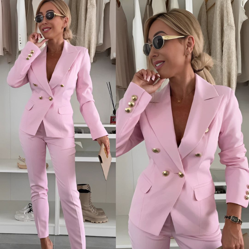 Tired of outfits that look good but feel restrictive? With the Sophisticated Double Breasted Blazer Two-Piece Set, you’ll enjoy freedom, polish, and comfort — the perfect blend of confidence and class for every occasion.