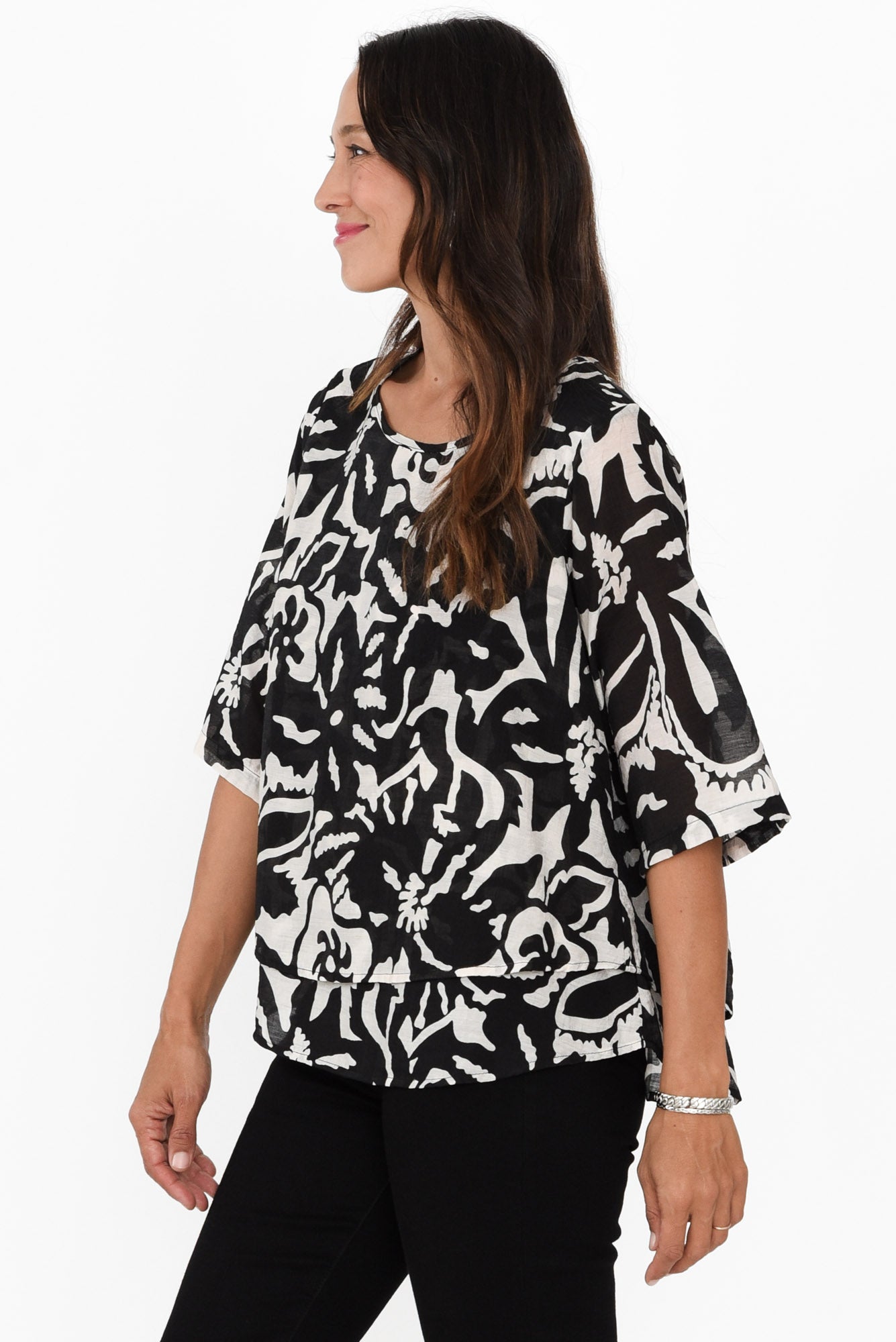 3/4 length sleeves offer a versatile, flattering finish