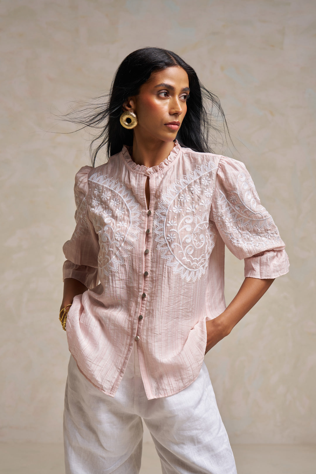 Subtle elegance meets everyday sophistication in soft pink peach tones.